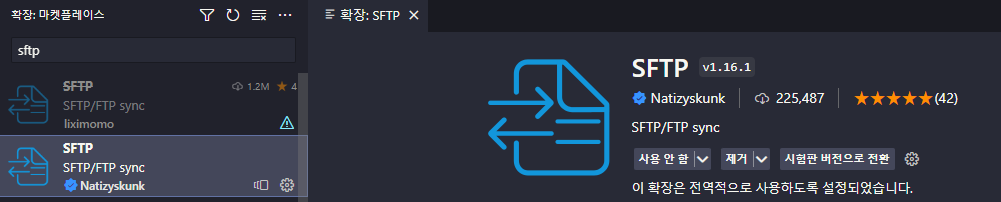 확장에서 sftp 설치하기