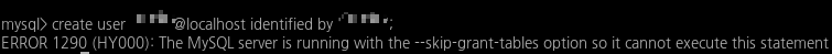 아까 위에서 실행해준 옵션(/usr/local/mysql/bin/mysqld_safe --skip-grant-tables &) 때문에 일어나는 오류이다.