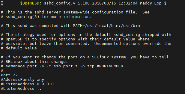 기존에는 Port 22가 주석처리 되어있을 것이다. 주석을 해제한다. (ssh 기본 접속 port가 22번이기 때문에 사용)