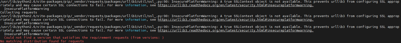 Could not find a version that satisfies the requirement requests (from versions: )