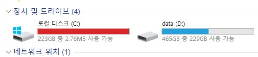 여기저기서 용량 부족으로 인한 메세지가 뜬다.