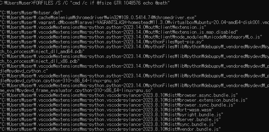 그리고 용량이 큰 파일을 찾으려면 아래 명령어를 입력한다.