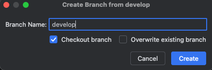 - 다른 A 개발자가 인텔리제이에서 'Create Branch' 기능을 사용하여 새 브랜치를 생성했을 때, `origin/develop`이 아닌 A 개발자의 로컬 develop 브랜치의 최신 커밋을 기반으로 새 브랜치가 만들어진 것으로 추정된다.