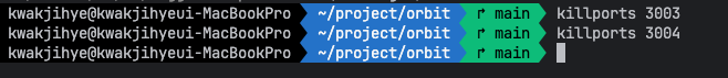 매번 포트 찾고 포트번호 넣어서 kill 하는 거 귀찮아서 `alias` 등록해서 쓰고 있어요