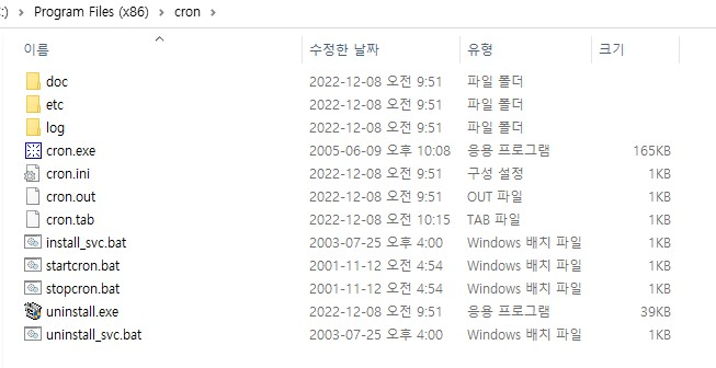 설치하고 나면 C:\Program Files (x86)\cron 이 생성 되었을 것이다.
