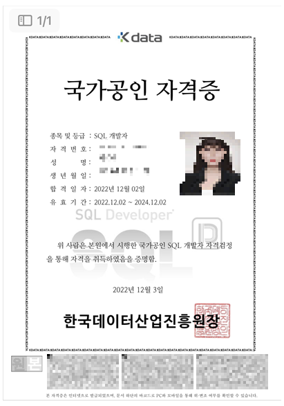여튼 올해 정처기 필기, SQLD 합격해서 그나마 다행이에요! (뿌듯