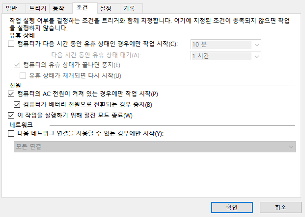 로그 파일이 정상적으로 생성되지 않는다면, 설정한 작업 스케줄러의 경로와 시작 위치가 정상적으로 등록되었는지 확인해 본다.