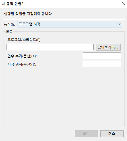 프로그램/스크립트에는 찾아보기를 통해 실행할 배치 파일을 선택한다.
