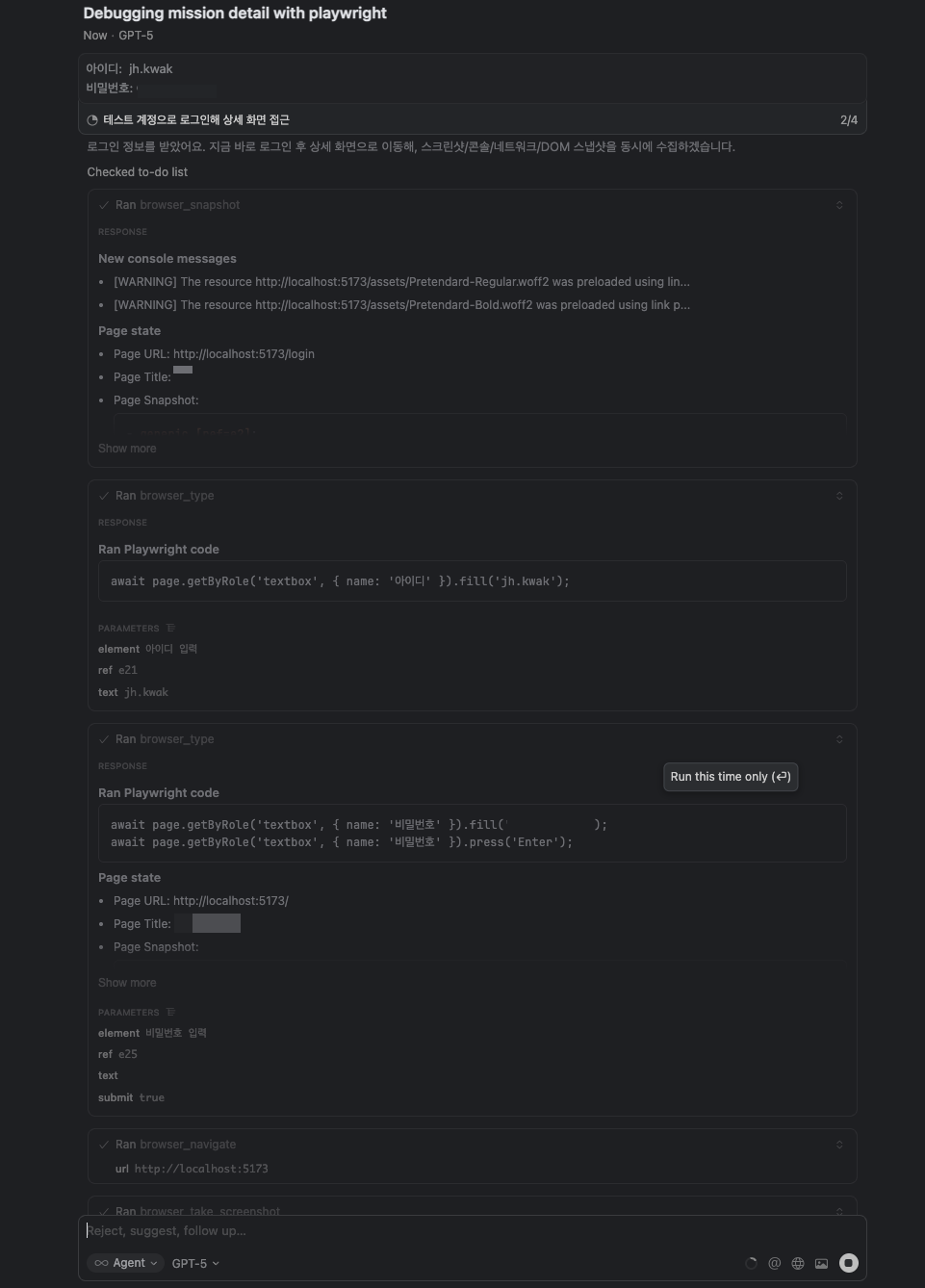 예전에는 셀레니움 써서 직접 코드 짜줬는데 이제는.. MCP 연동해서 자연어만으로도 테스트가 가능하다.